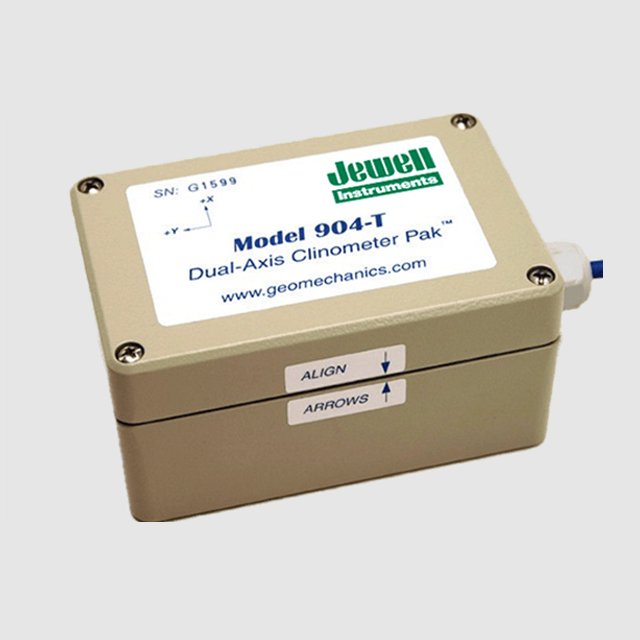 904-T 型測斜儀套裝將我們的 900 型雙軸測斜儀與一個防風雨的 NEMA 4X(IP65)防護外殼相結合,適用于對機械防護和環境防護有要求的室內或室外應用場景。該套裝提供高增益型、標準型和廣角型三種版本供選擇,每種版本具有不同的角度測量范圍。測斜儀套裝的內部電路可接受寬范圍的輸入電壓,并能為數據記錄儀、可編程邏輯控制器(PLC)、數字電壓表和其他記錄設備提供穩定、低阻抗的模擬輸出信號,以便進行測量。溫度傳感器是該套裝的標配。可選配置包括粘性阻尼和 0-5 伏輸出。該產品還提供配備可潛水不銹鋼外殼的版本。